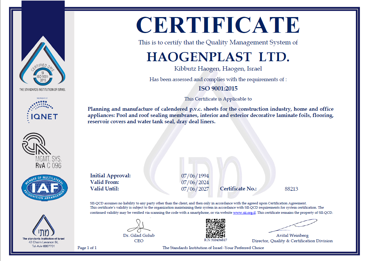 By aligning with these rigorous international standards, Haogenplast guarantees that every product you receive is the result of science, ethics, and precision working together – reinforced PVC membranes that protect the environment, elevate design, and last beautifully over time.